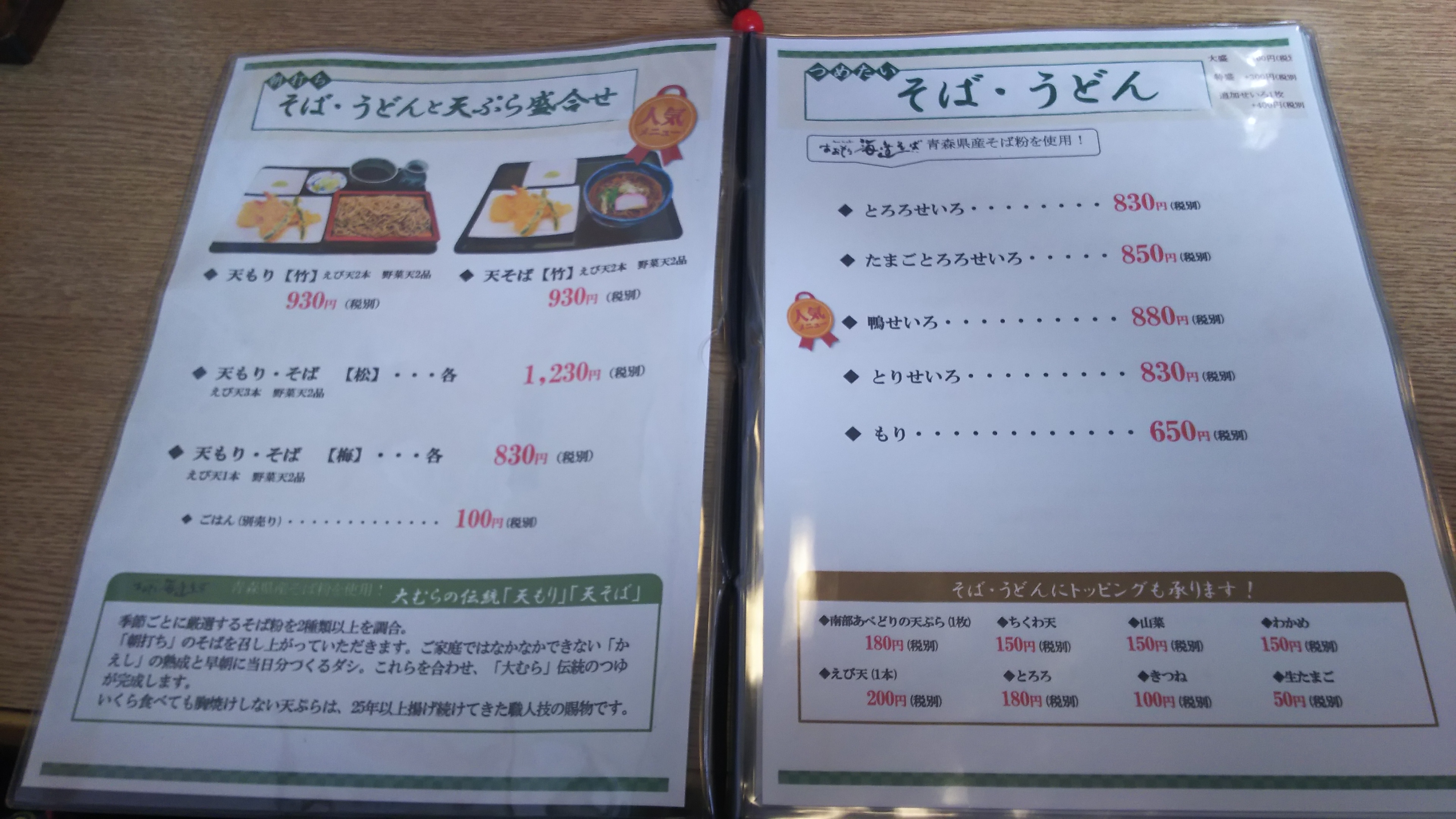 そばも丼ぶりものも食べたい!そんな時はセットがお得な青森市浜田の「大むら」さんもいいですよ!