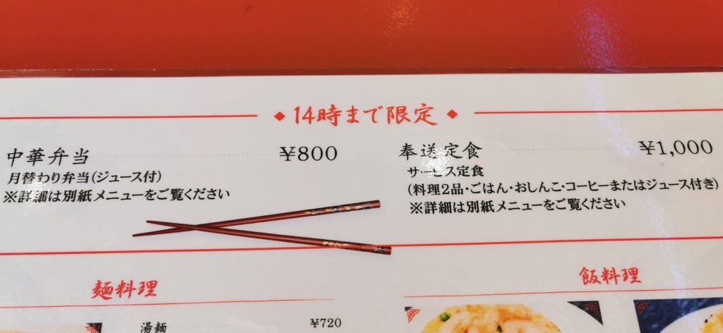 4品の中から2品選ぶサービス定食と中華弁当がランチで人気ですよ^^