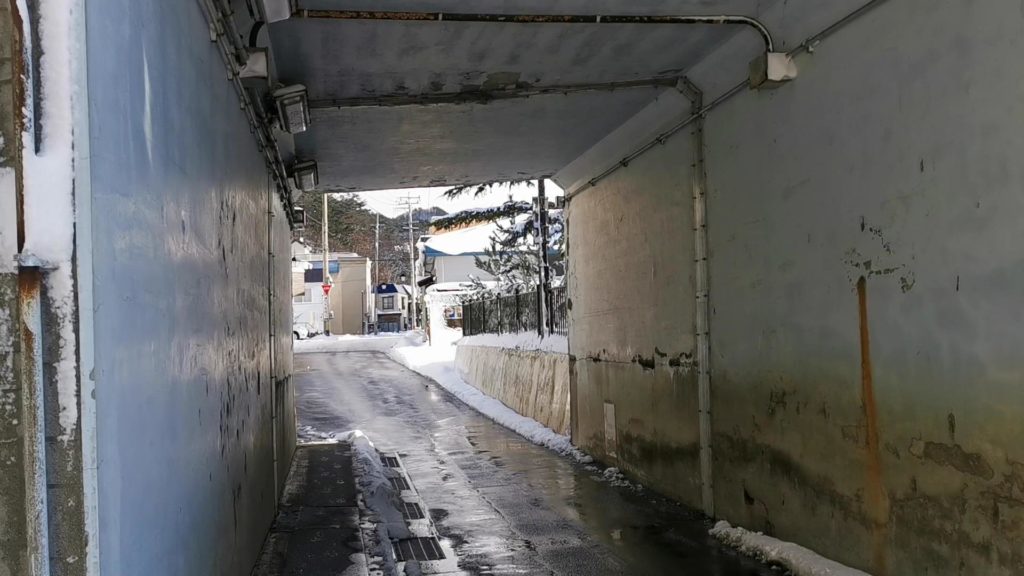 トンネルを通って住宅街に進入します!