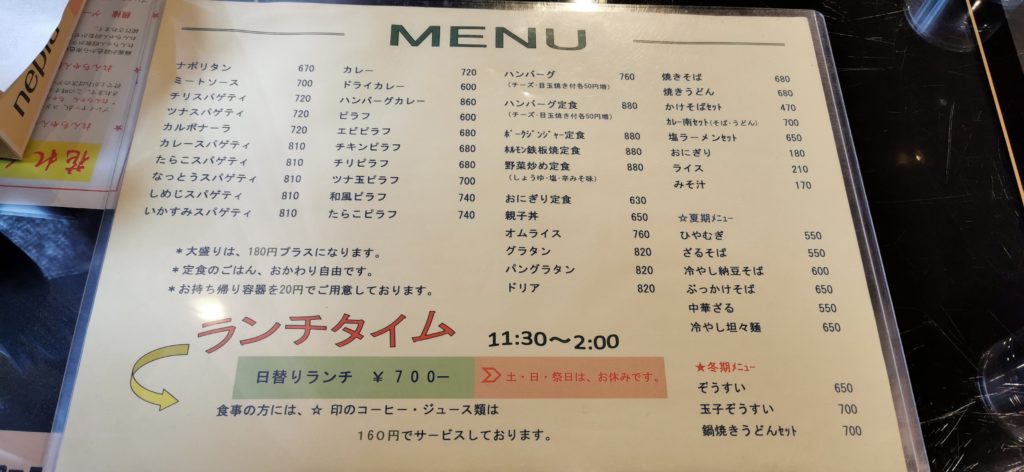 営業時間 10:00~22:00 ランチタイム11:30~2:00