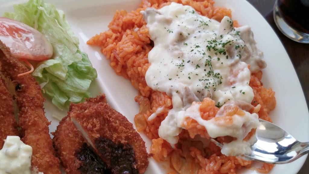 こちらがクリームピラフとミックスフライのランチ!