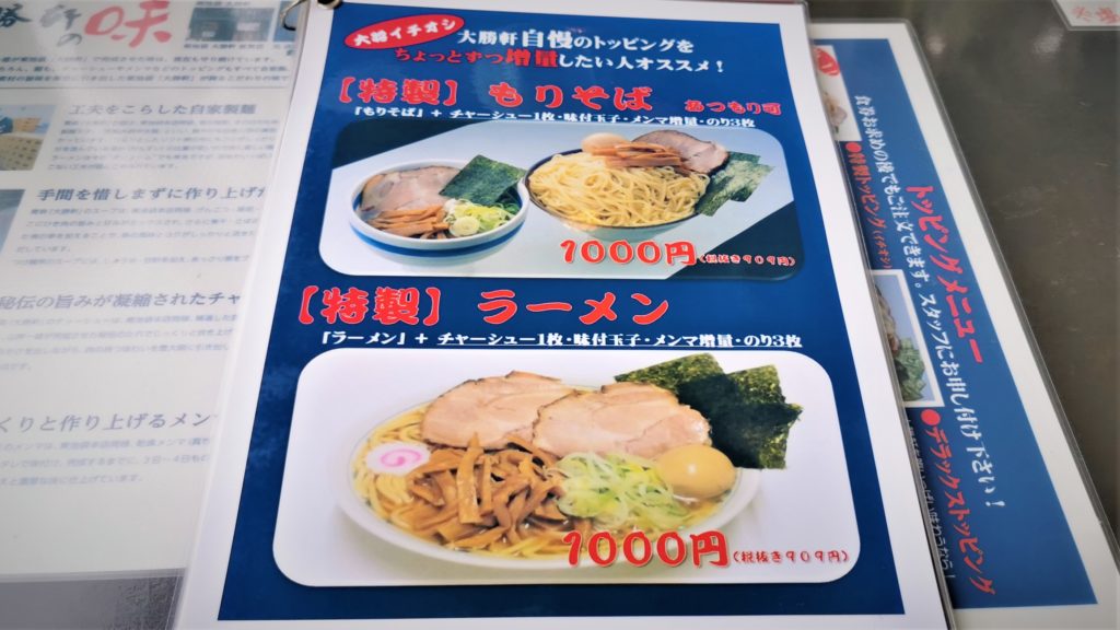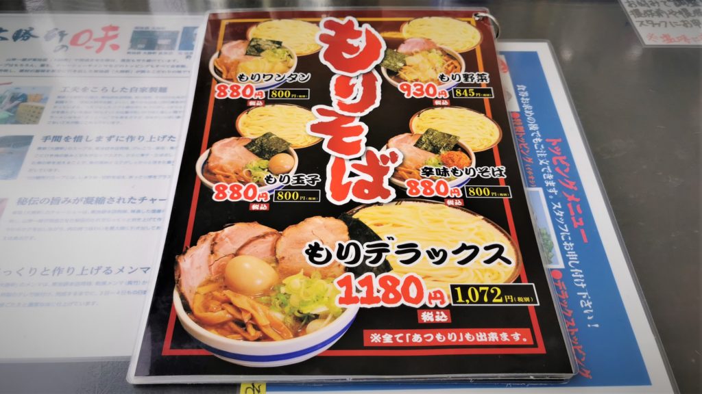 ではメニューを見ていきましょう!大勝軒と言えばモリそばですよね^^