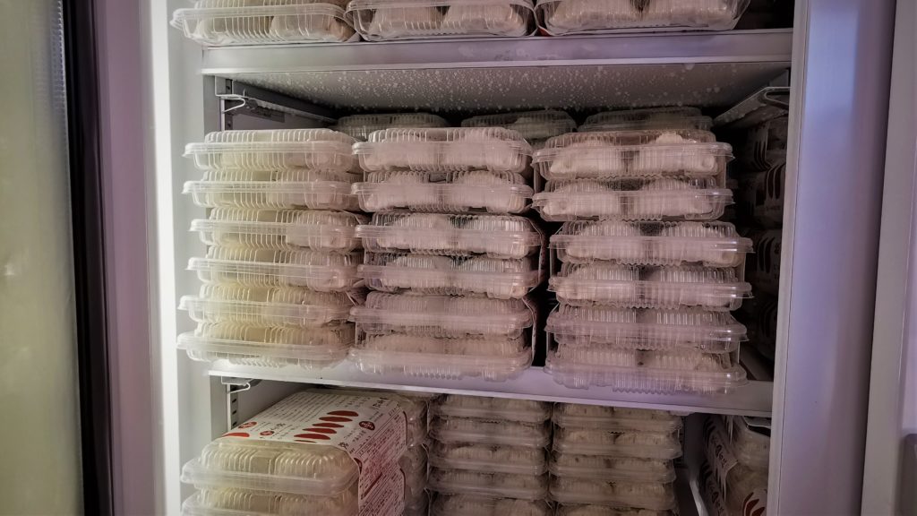 勝手に冷凍庫から餃子を取り出して袋に詰めるだけです!