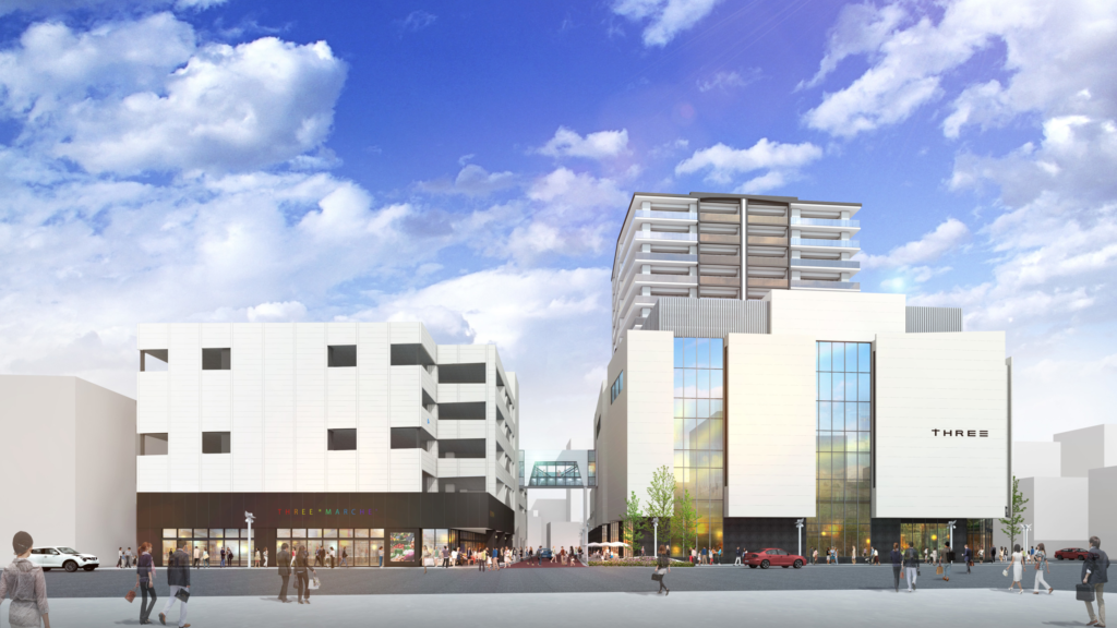 中三跡地に2023年春開業予定の複合商業施設「THREE(スリー)」