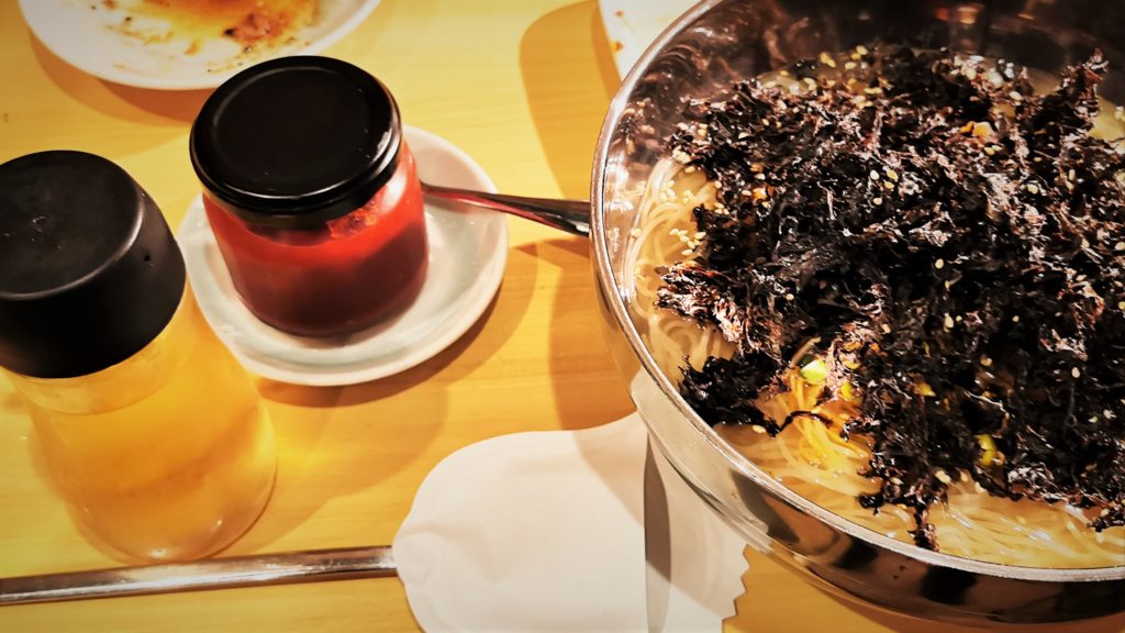 海苔の量がすごい!これは将軍様も愛したピョンヤン系冷麺!