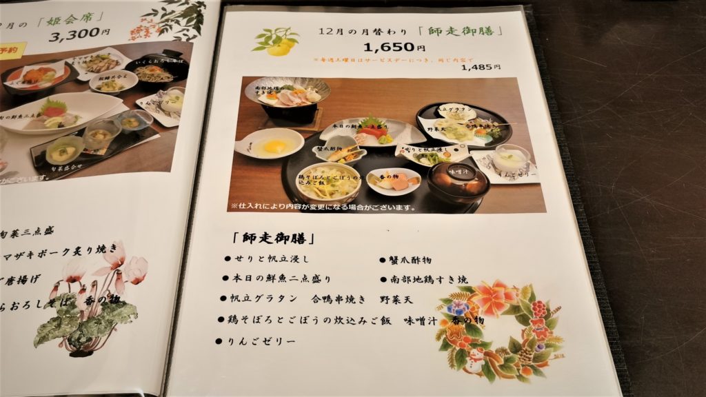 ランチメニューは通常、日替りとすき焼き鍋膳です!その他のメニューは前日予約、月替り膳は土曜日に限り予約なしでOKです!