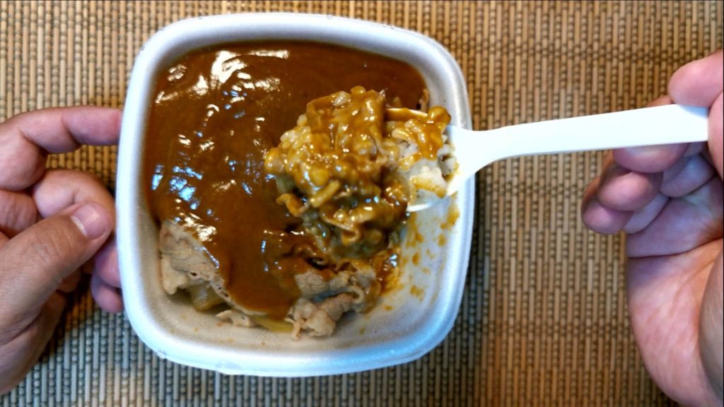 それでは実食です!まずは吉野家カリガリ肉だく牛カレー!