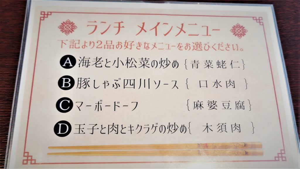 連れは天津飯のセット、私は4品から2品選ぶセットをオーダー!