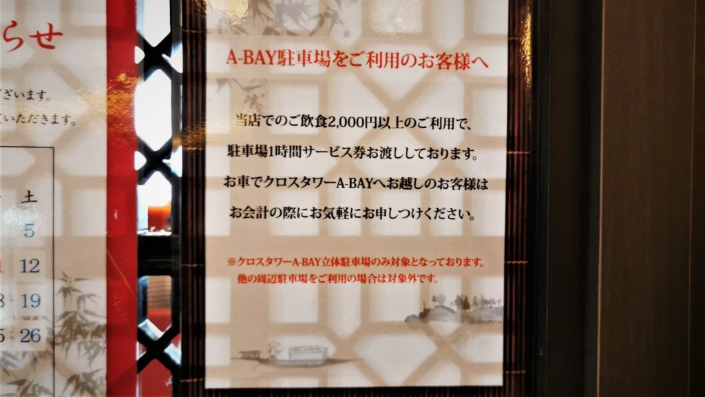 二千円以上の飲食で駐車券が出ます!