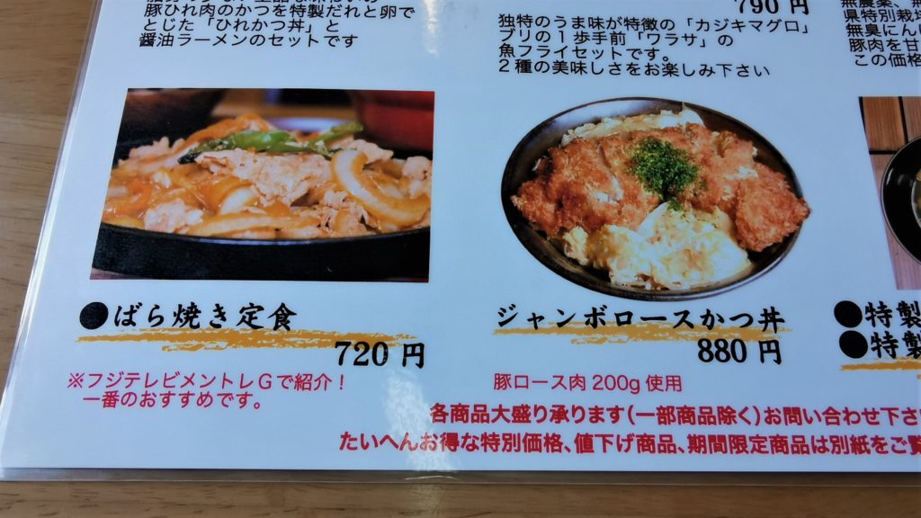 連れはジャンボかつ丼、私はジャンボバラ焼き定食をオーダー!