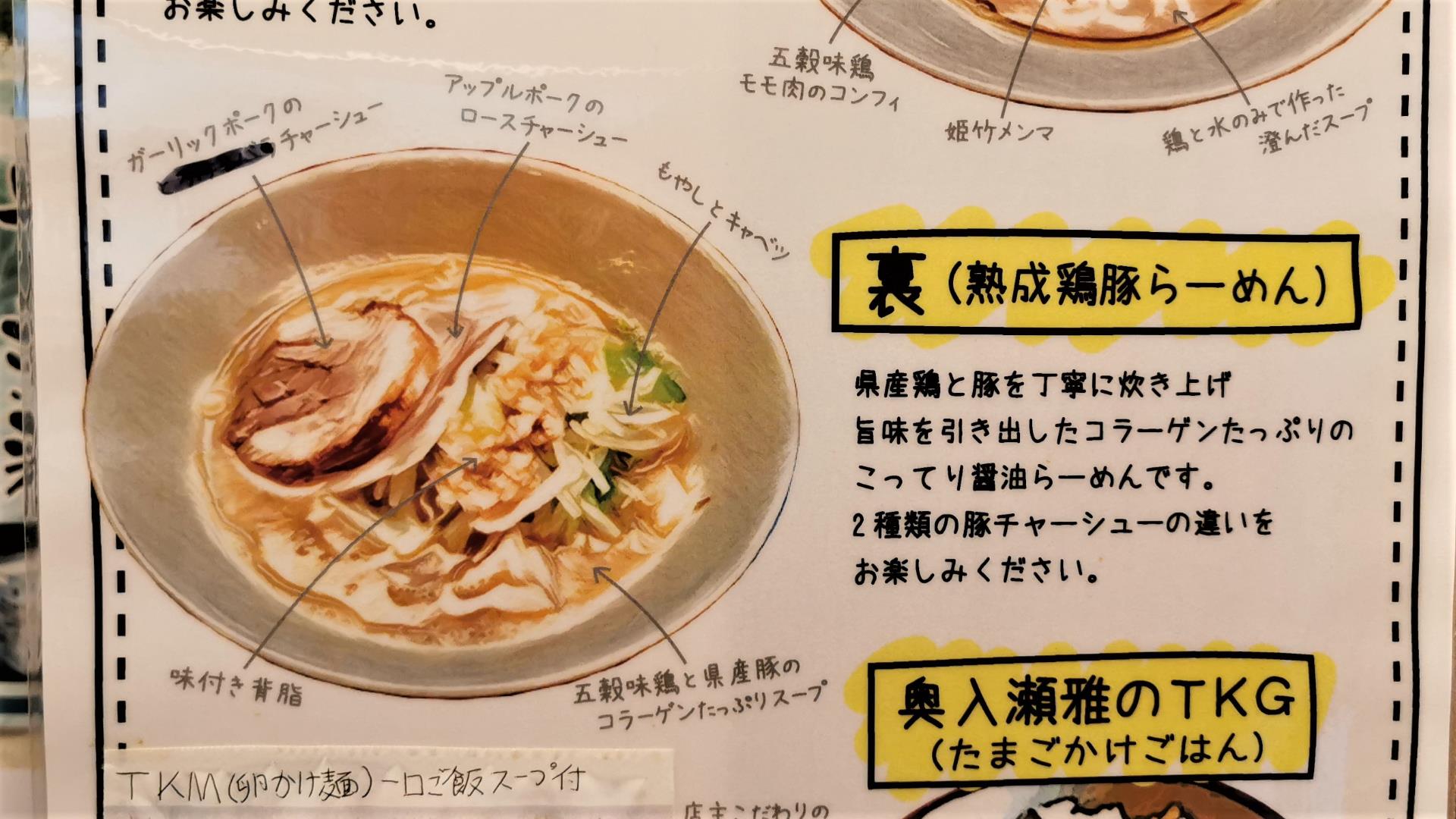 メニューは水と鶏だけで出汁をとった表!