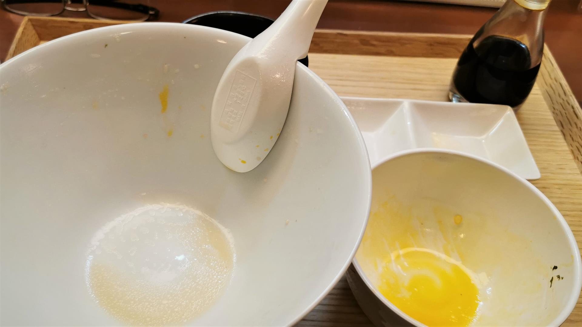 こちらが水と鶏だけで出汁をとった表+TKGです!