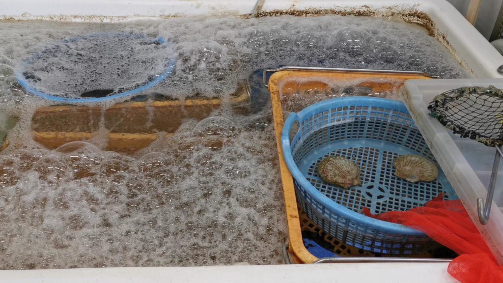ホタテは生け簀から取り出します^^