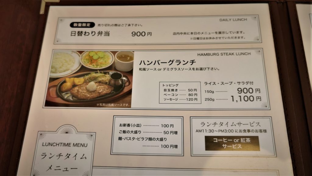 連れは日替わり私はハンバーグランチをオーダー!