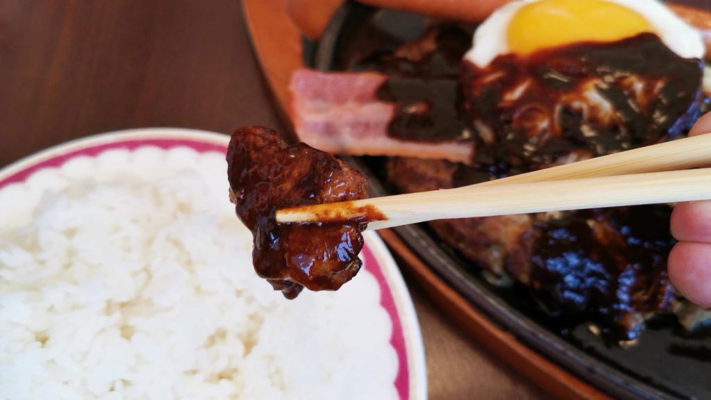 意外にアッサリ目なハンバーグに濃厚なデミグラスソース!