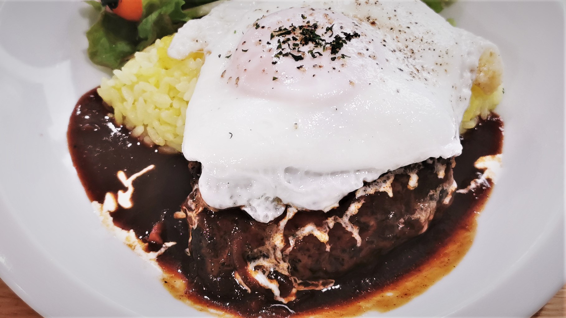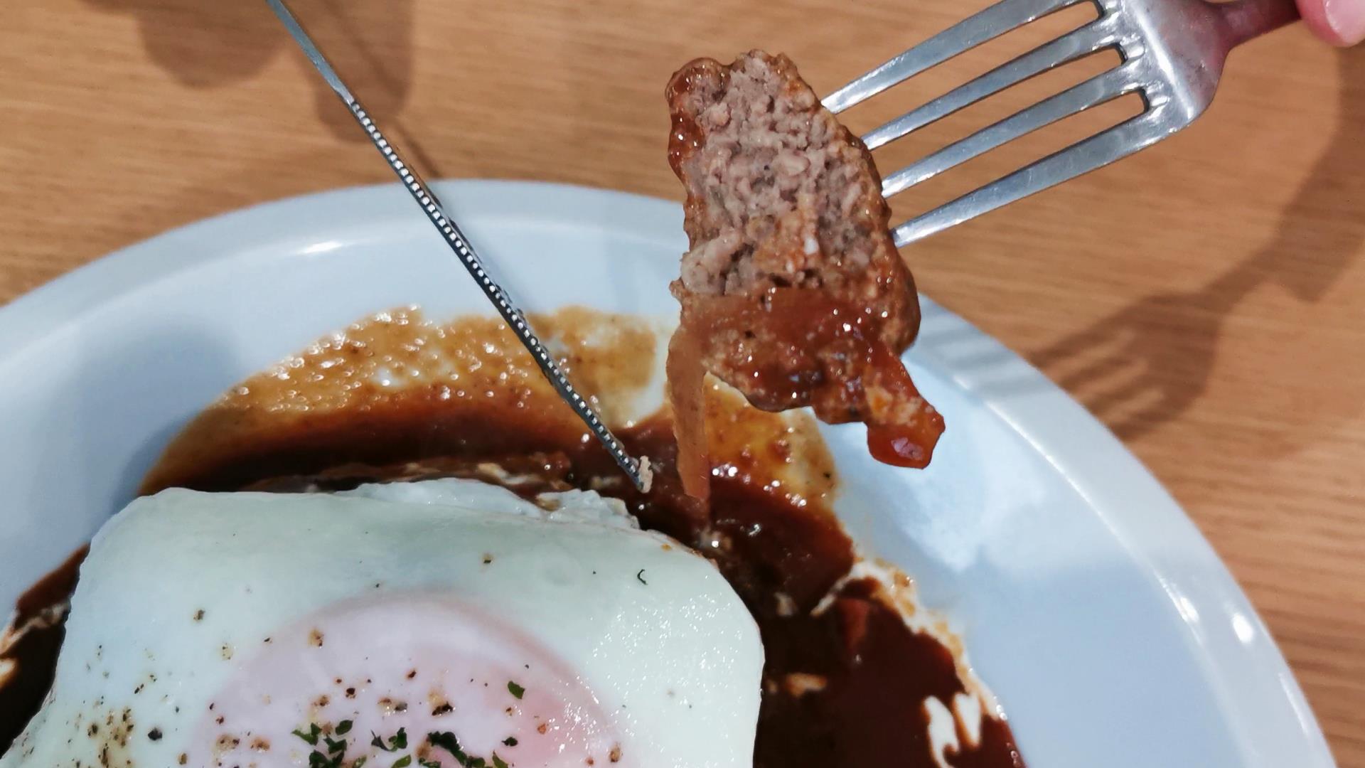 ハンバーグ+目玉焼き+デミグラスソースの破壊力が半端ない^^
