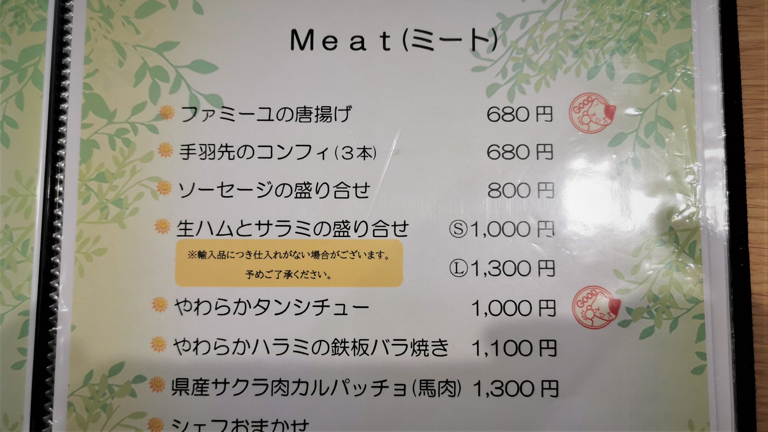 グランドメニューの紹介!