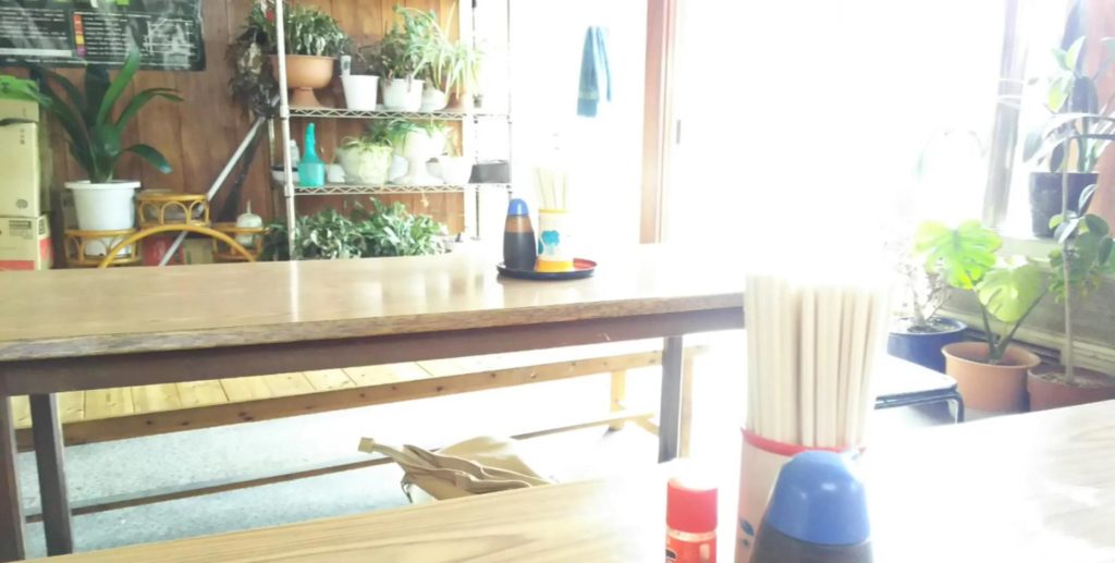 店内は長テーブルが二つにカウンター!