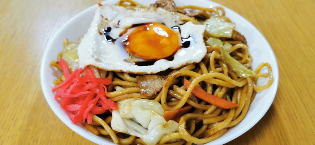テイクアウトした焼きそば大と目玉焼き!