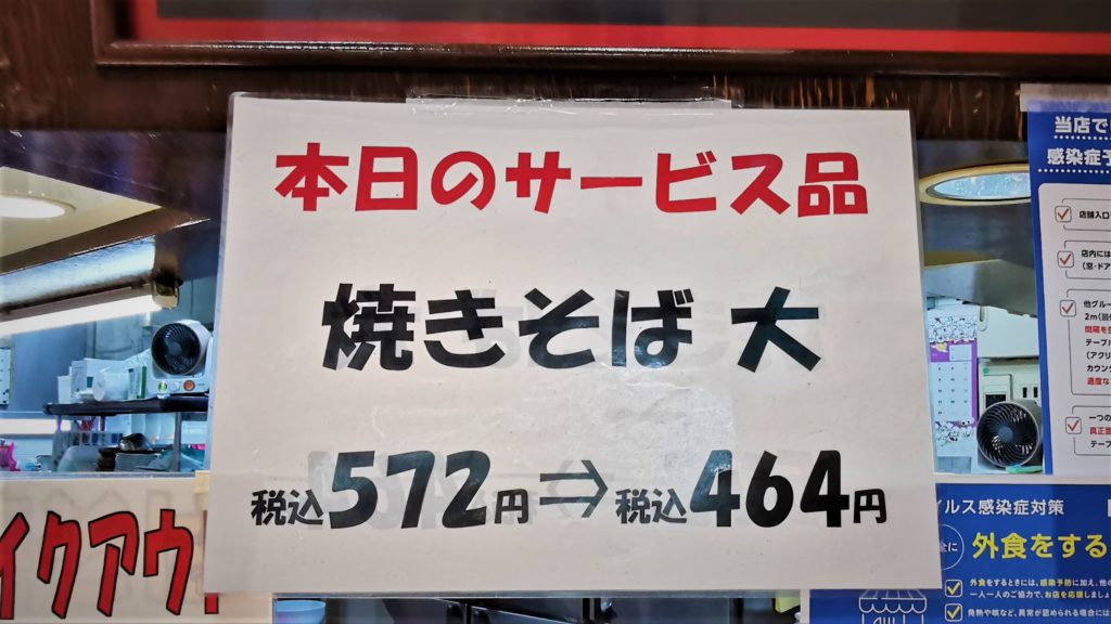 火曜市のサービスメニュー焼きそば大です!