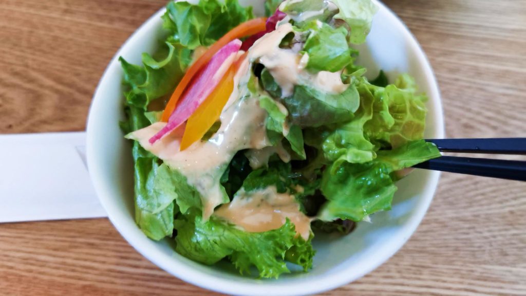 定食にするとサラダと味噌汁が付きます!サラダもたっぷりでおいしいですよ^^