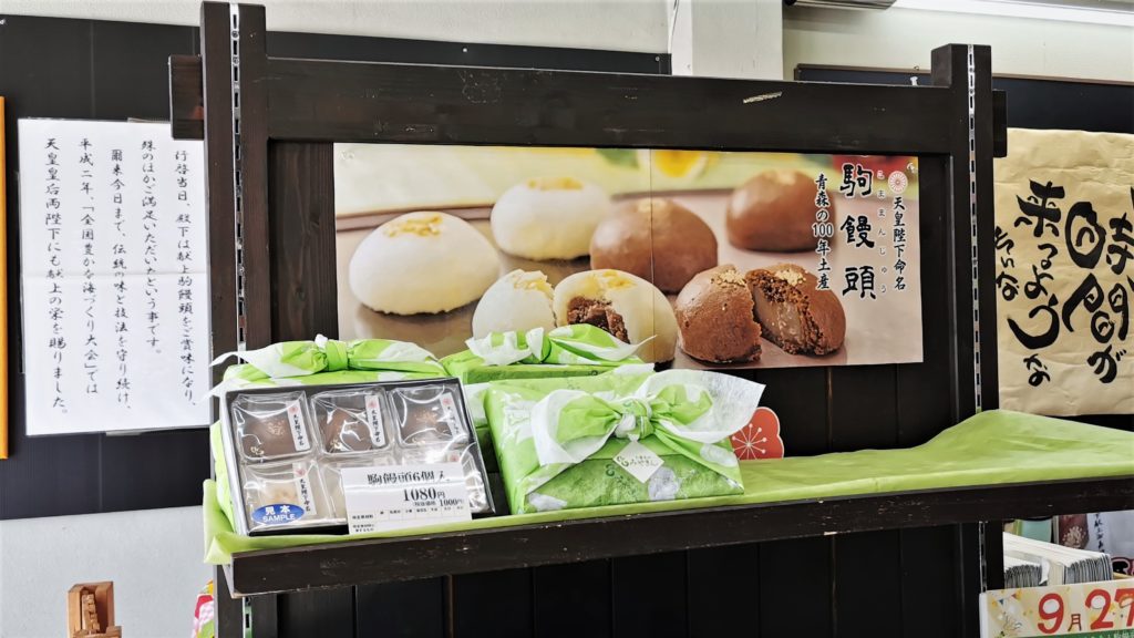 明治41年9月27日当時皇太子であられた大正天皇が、七戸町にある種馬牧場に行啓の折饅頭を献上した際「駒饅頭」と命名くださったのが由来とのことです^^