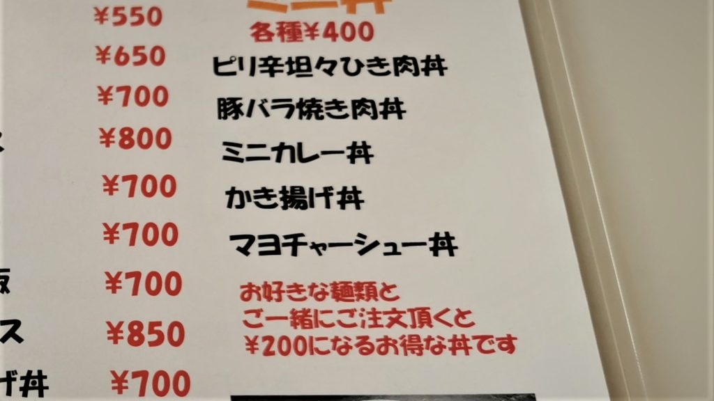 セットのミニラーメン200円も付けました!