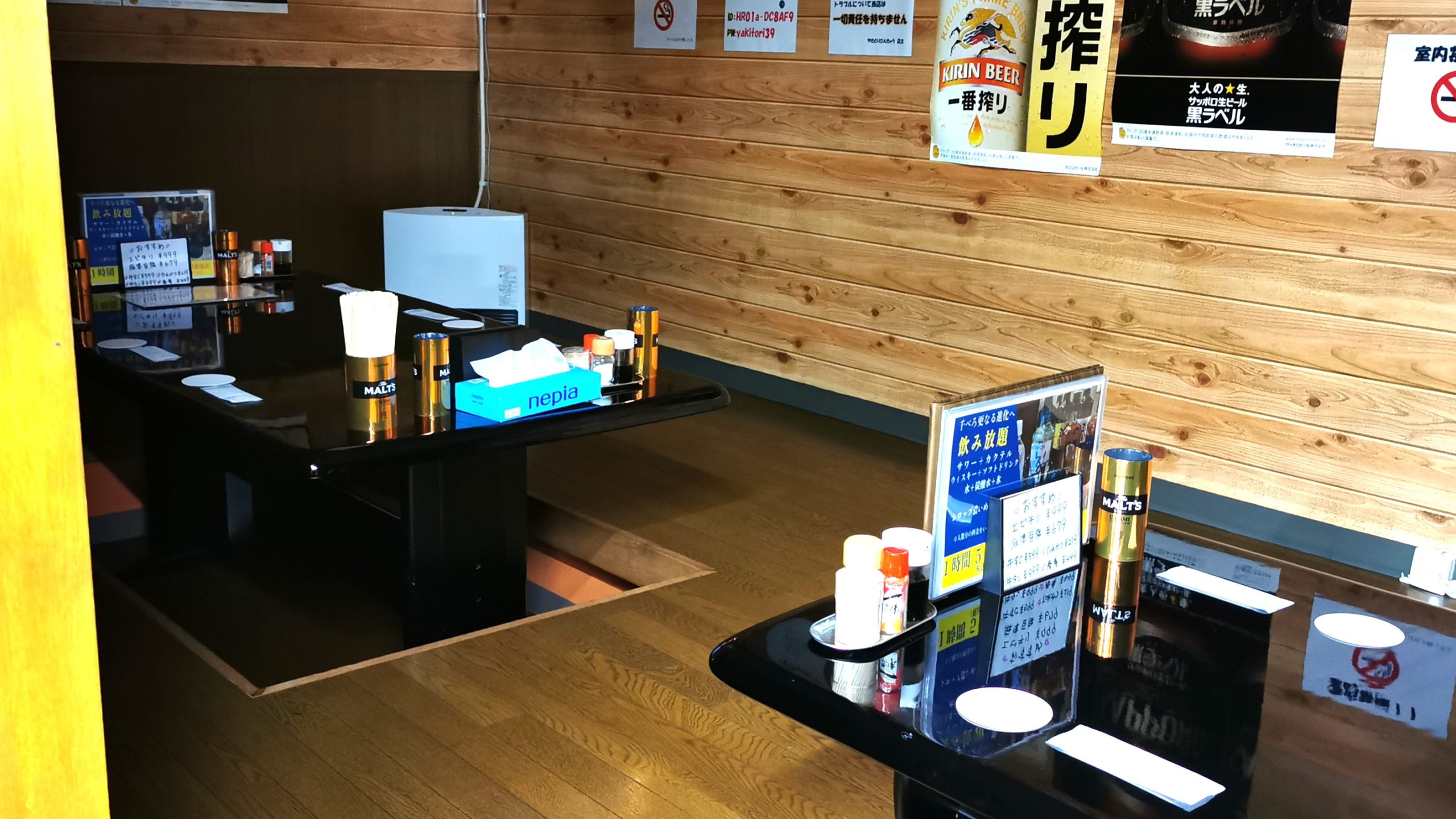 奥には宴会によさげな掘りごたつ式小上がりが4卓!