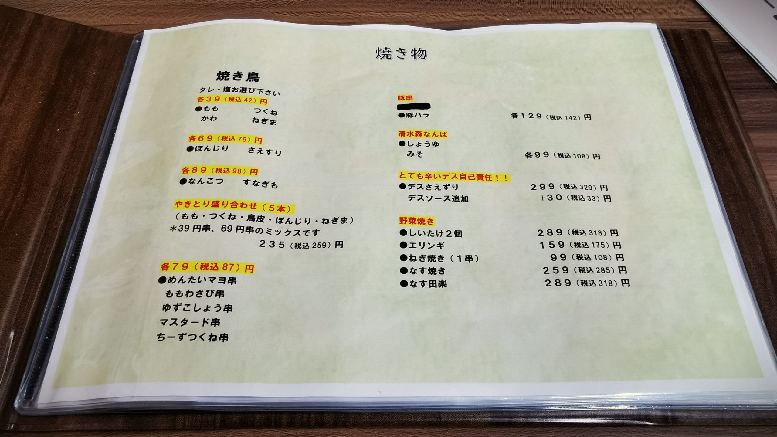 焼物が安い!1本税抜39円から!