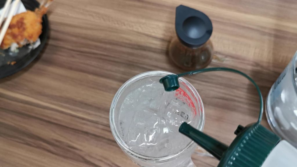 次は麦焼酎の炭酸割!レモンシロップ!