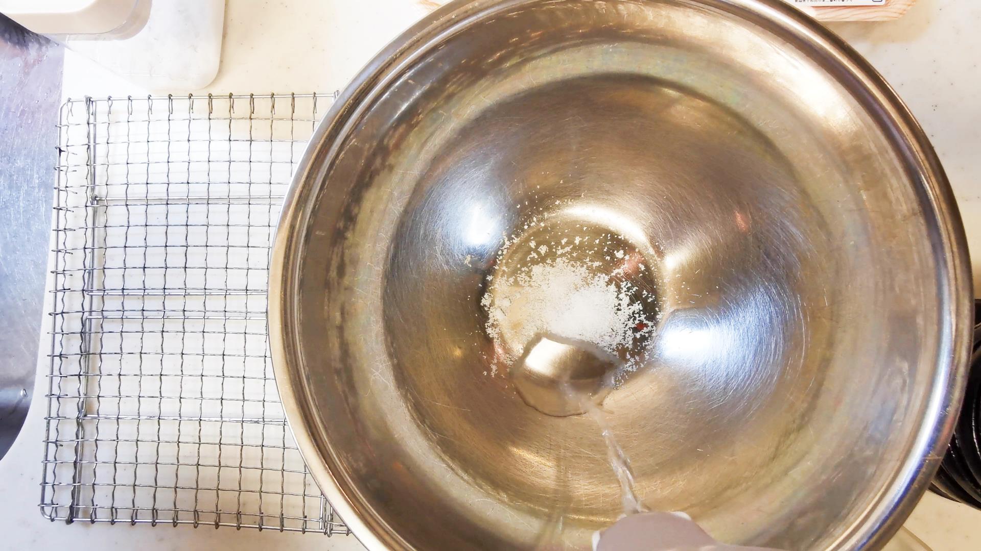 イクラを洗うために5%40度の塩水を作ります!