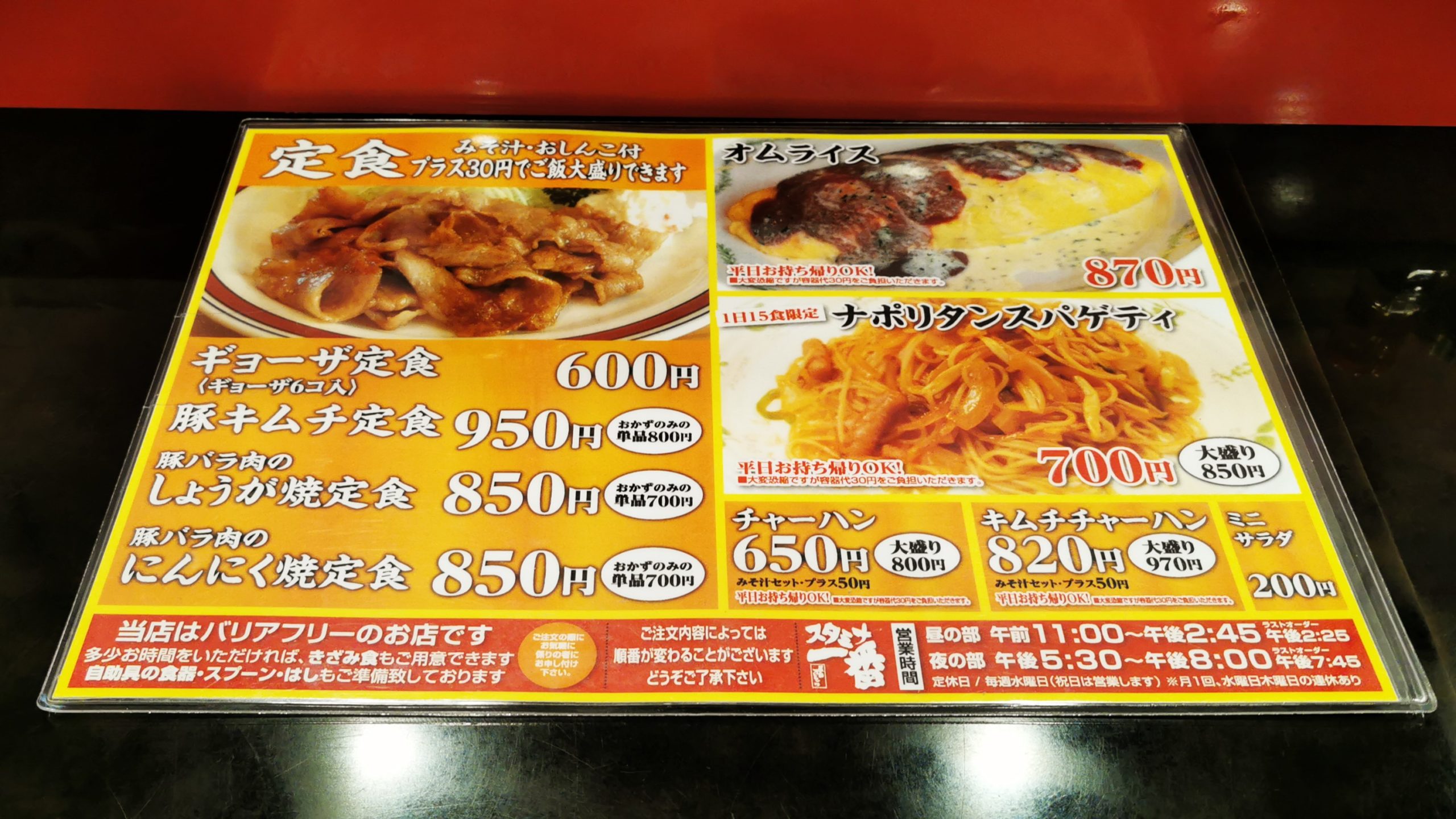 人気のスタミナ一番さんです!個人店では県内初のバリアフリー認定店舗、車いすの方もお気軽にどうぞ!