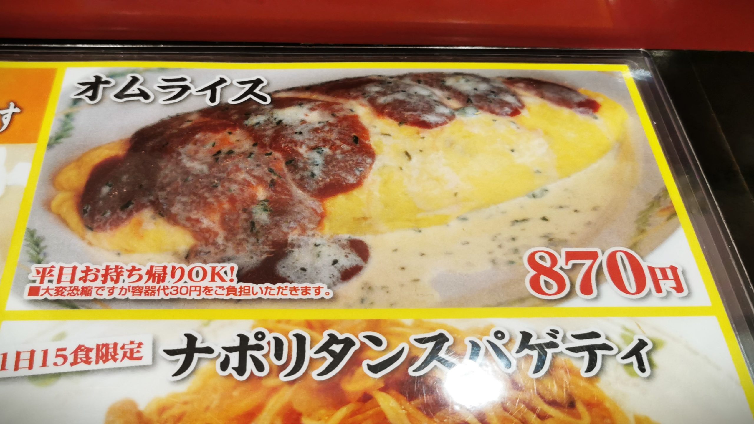 平日のみテイクアウト可能なオムライス870円!