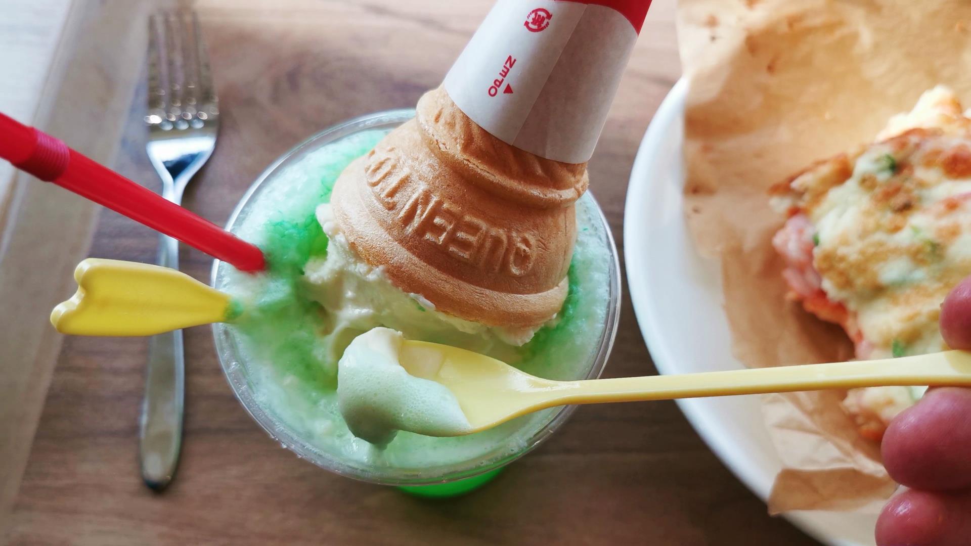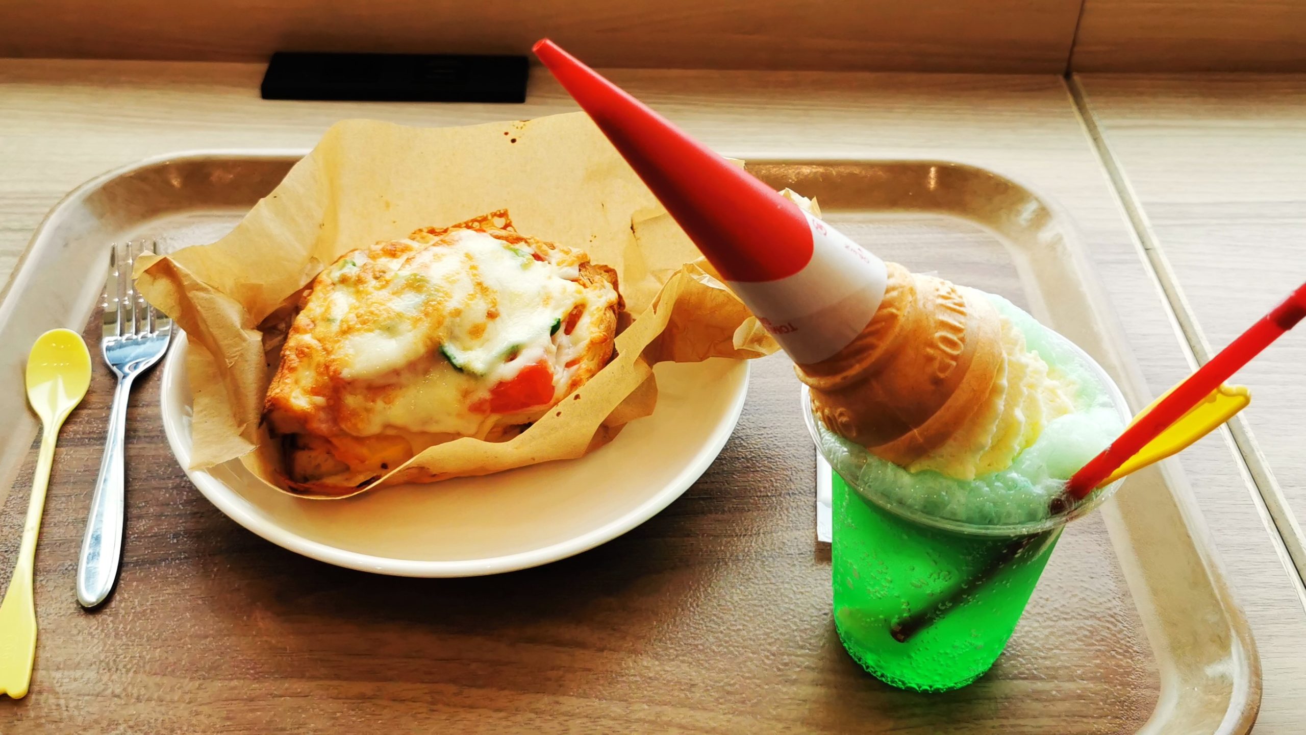 ピザトースト370円とびっくりメロンソーダフロート250円です!