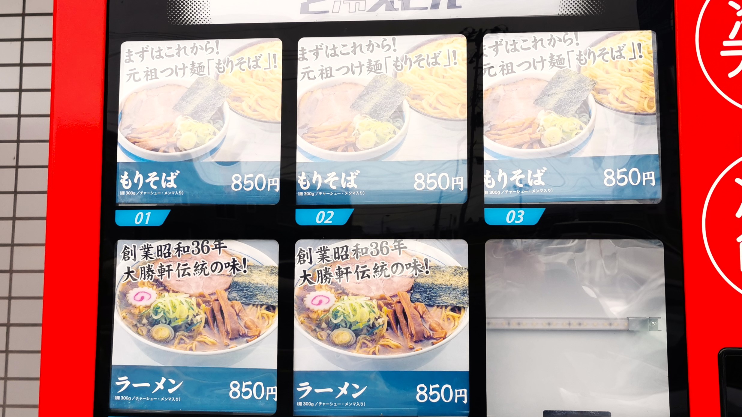 大勝軒のラーメンとつけ麺は自販機で購入できます!