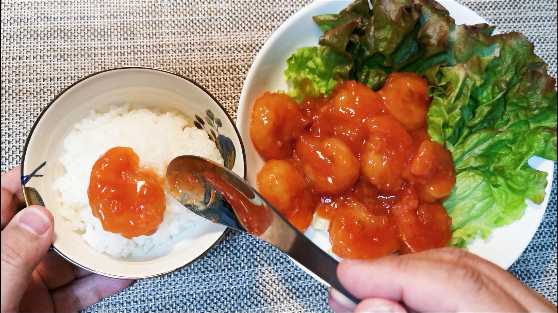 ピリ辛のタレが白飯に合いますよ^^