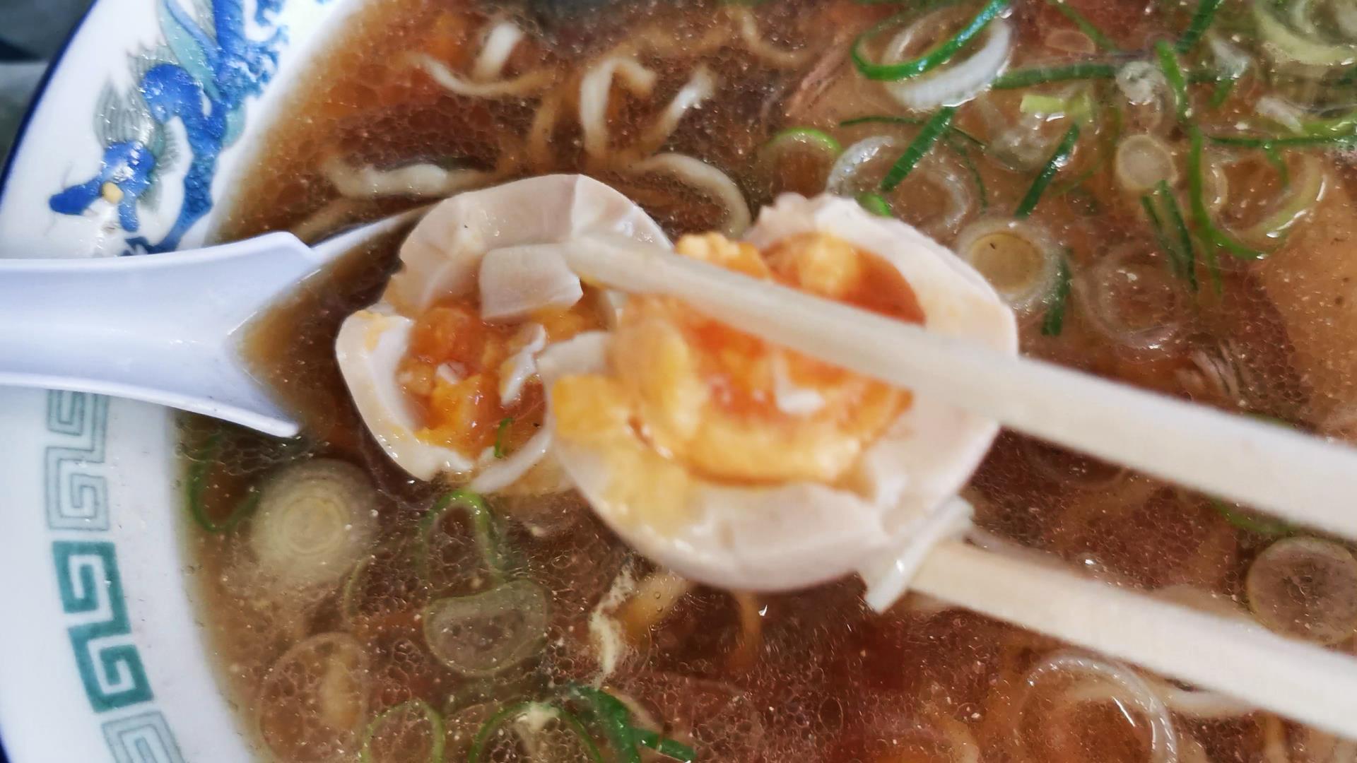 ちょっと硬めに茹でられた煮卵!