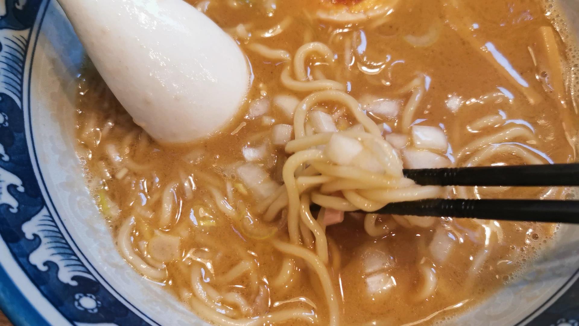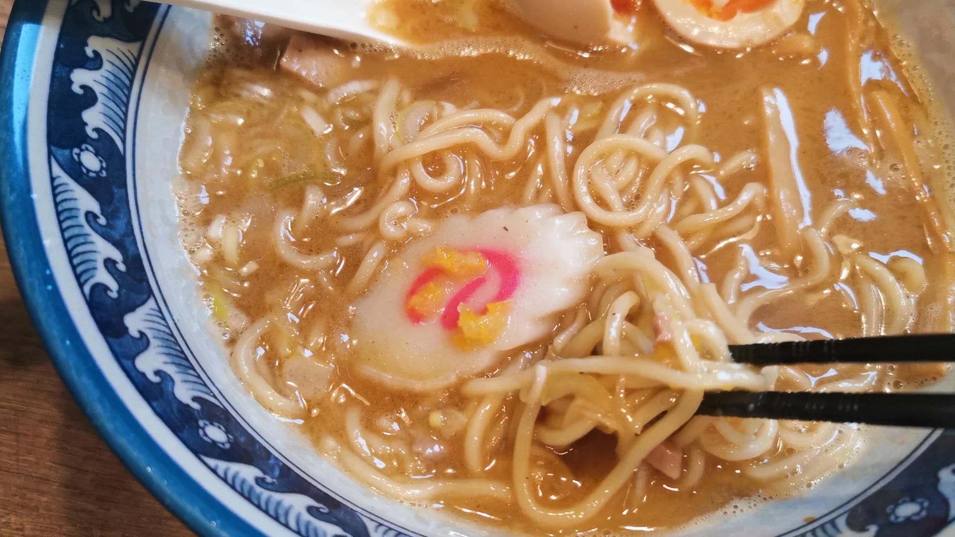 麺は中太、シコシコとしておいしいですね!