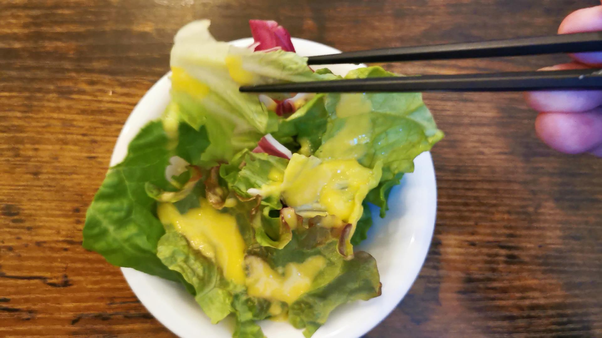 最初にサラダが出てきます!
