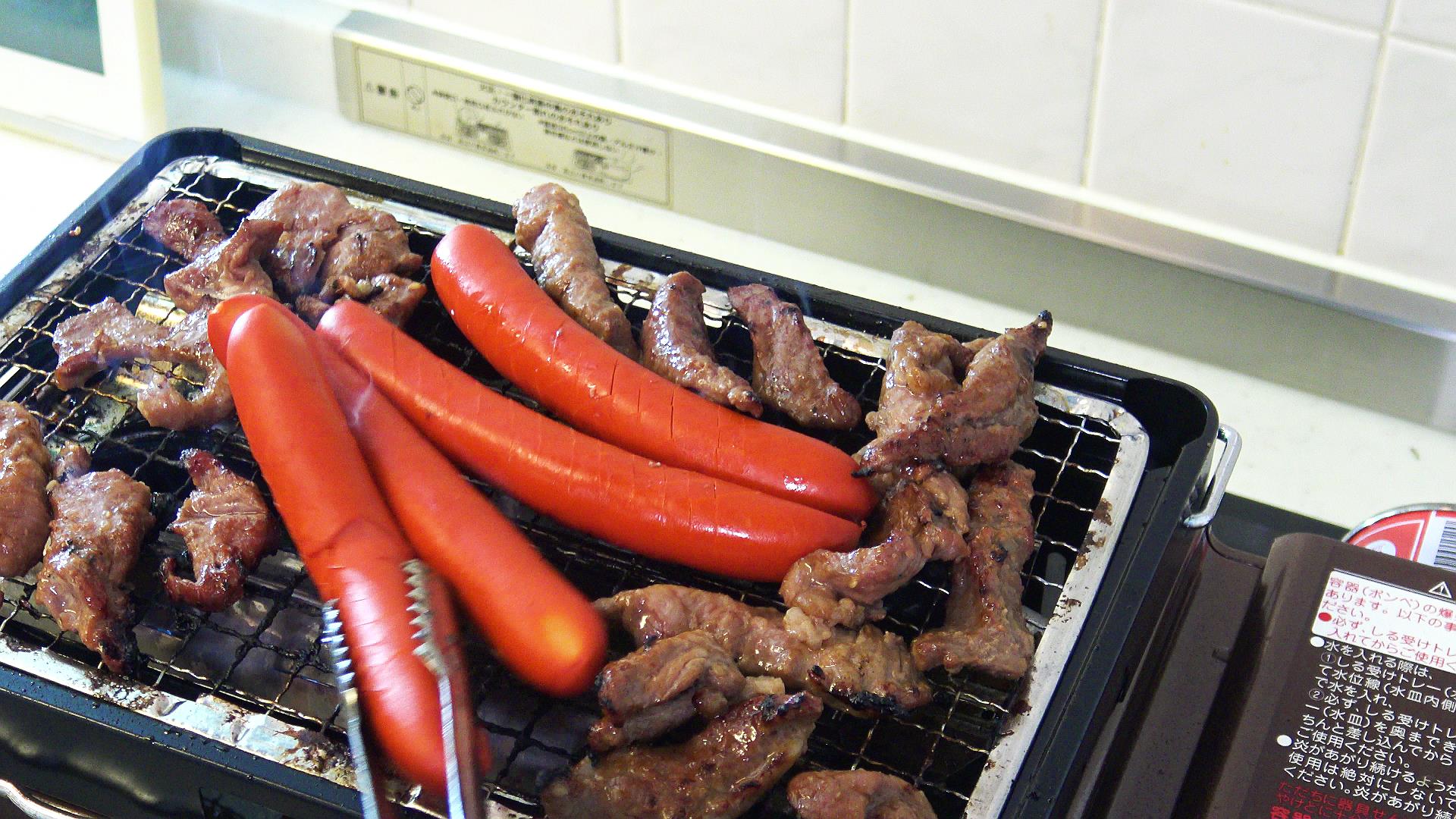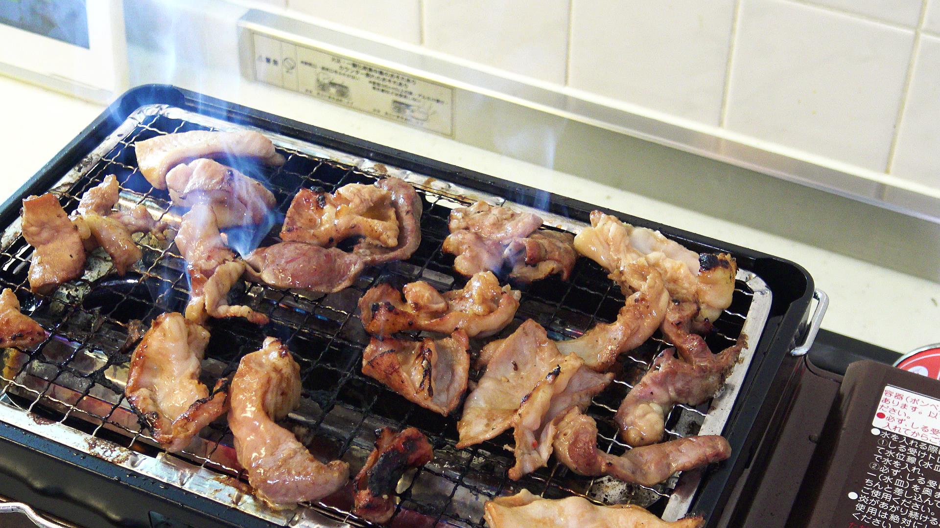 キッチンの換気扇の下で焼いています!