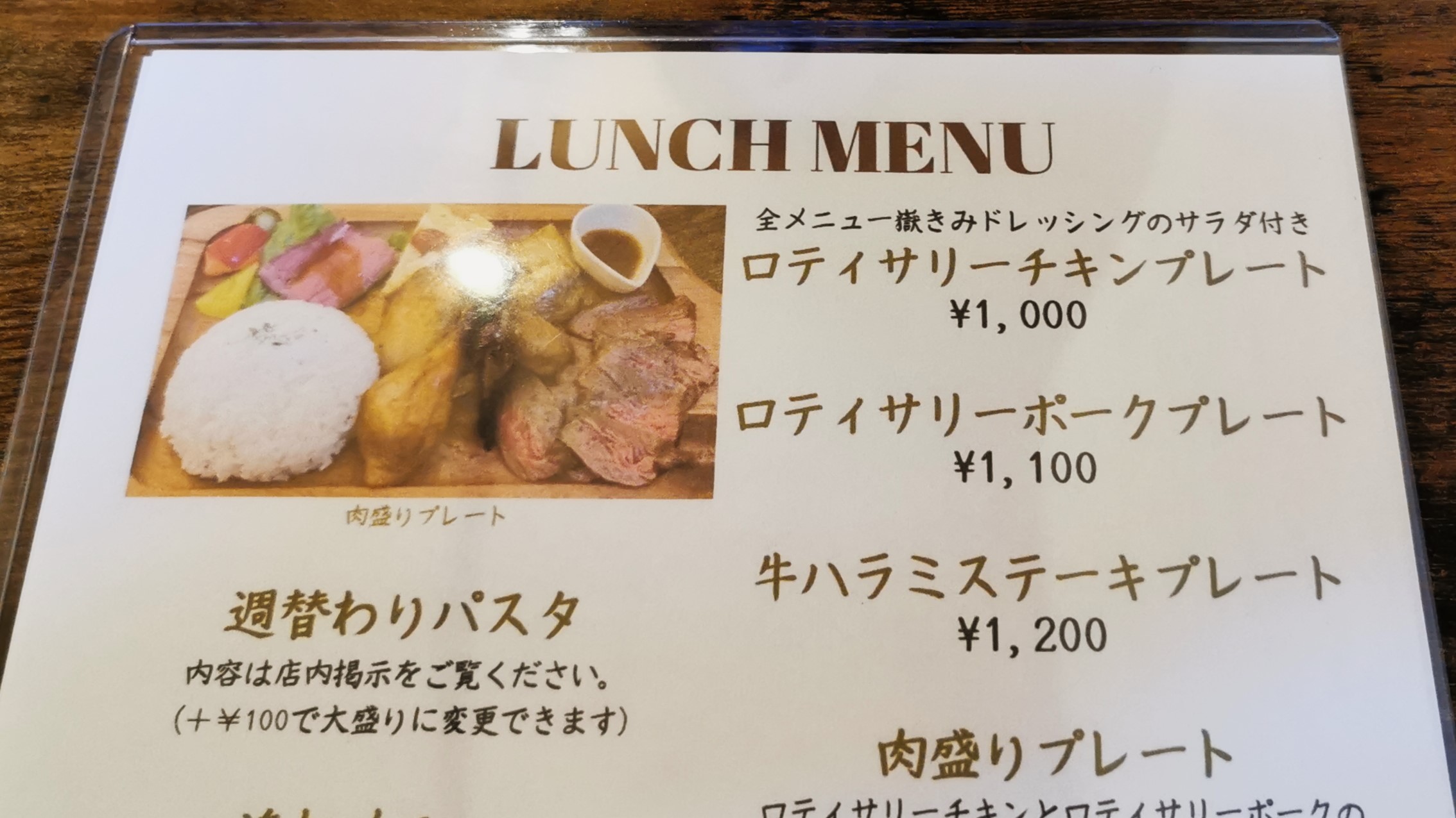 連れは週替わりパスタ、私は肉盛りプレートをオーダー!