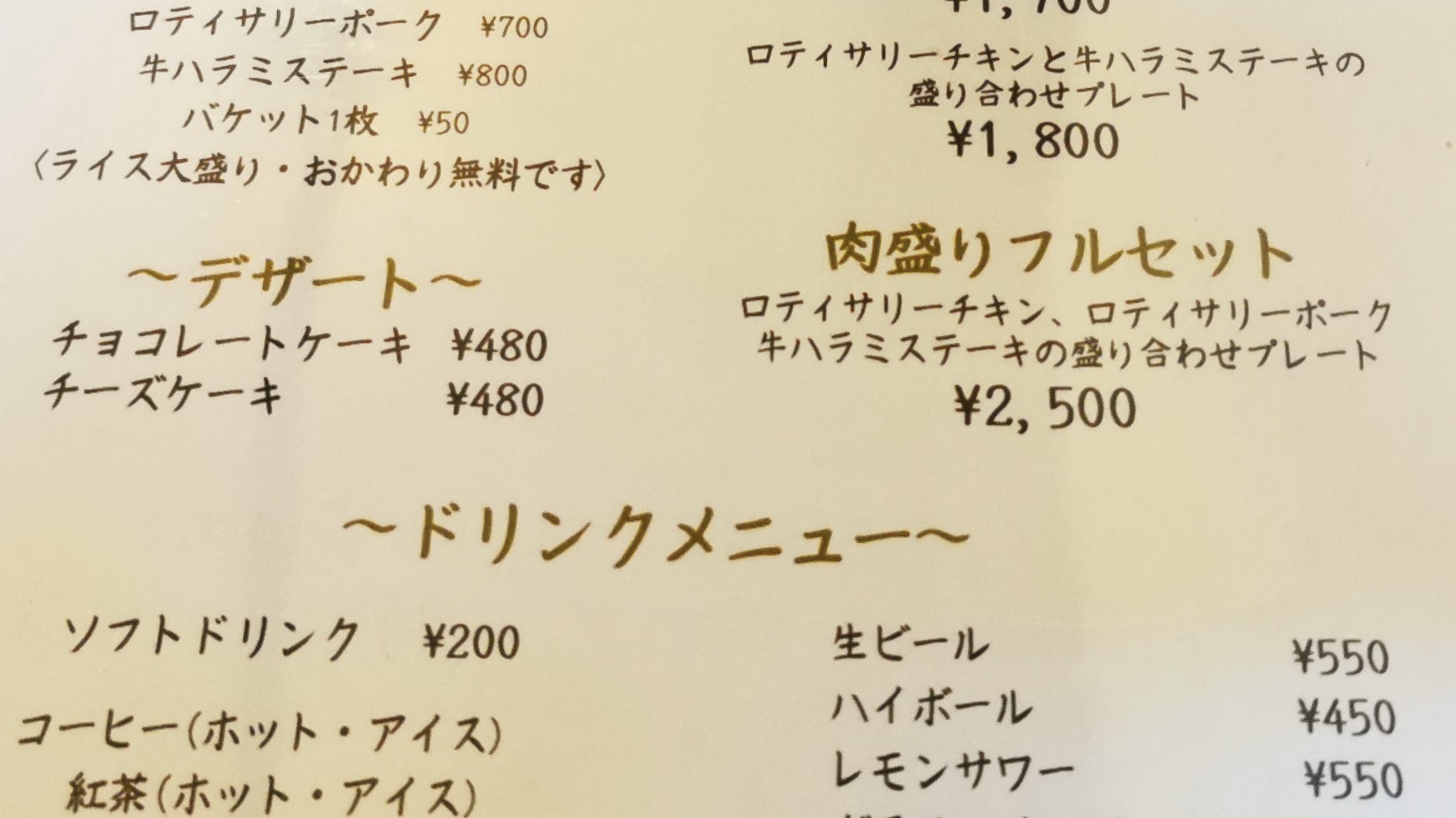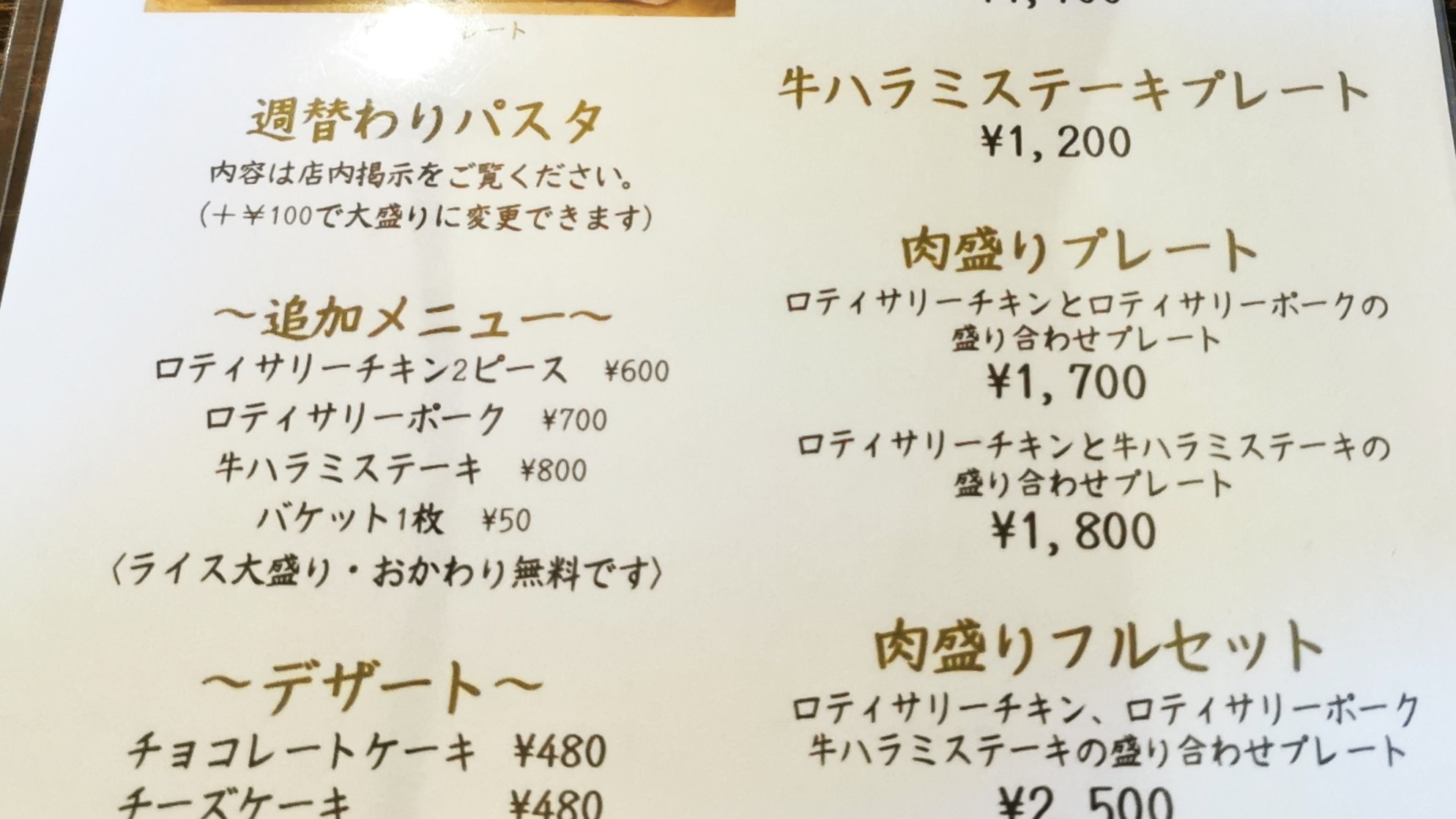 肉盛りプレート牛ハラミステーキ付きで1800円です!
