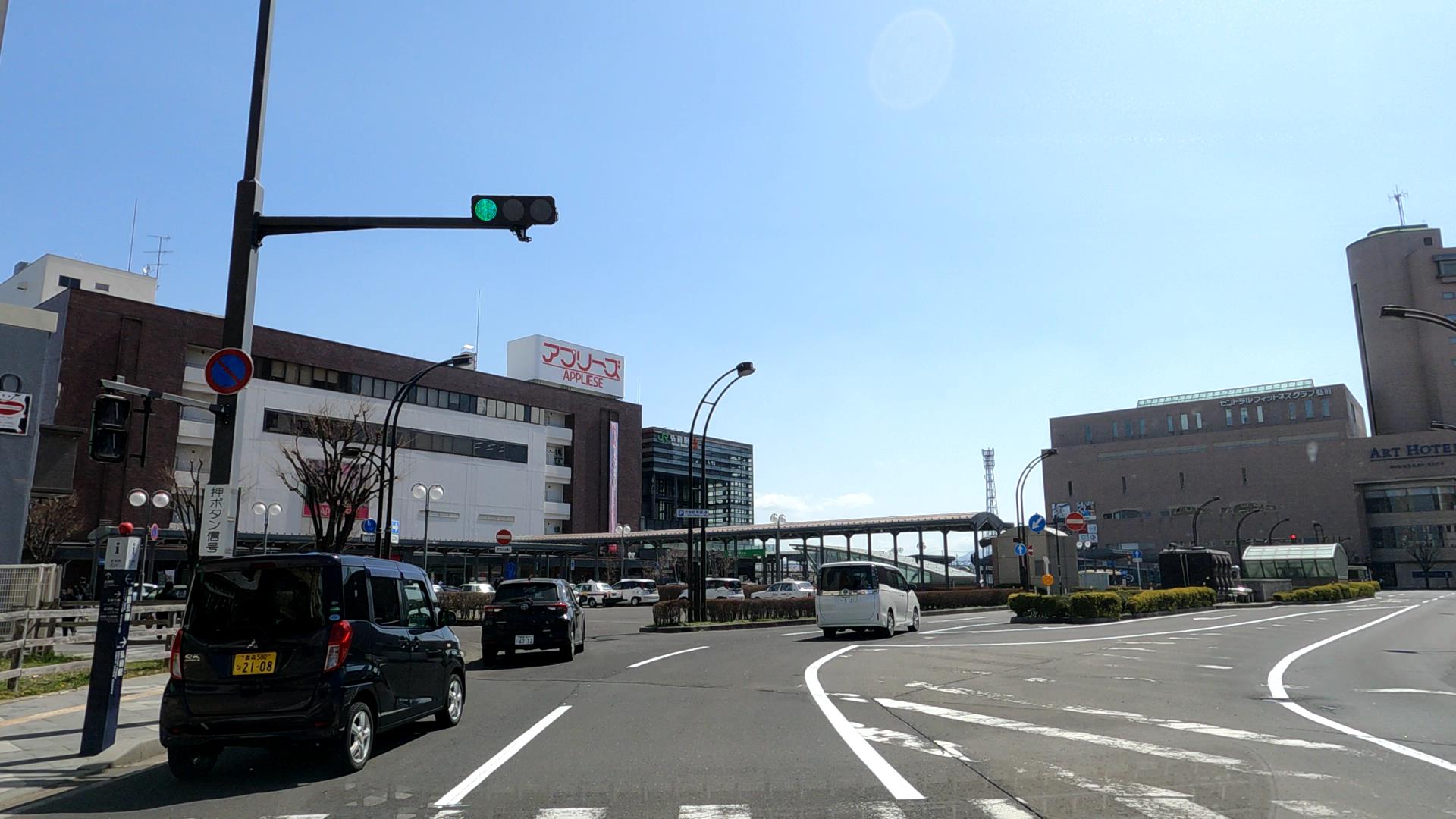 弘前駅前のロータリーを走行中!