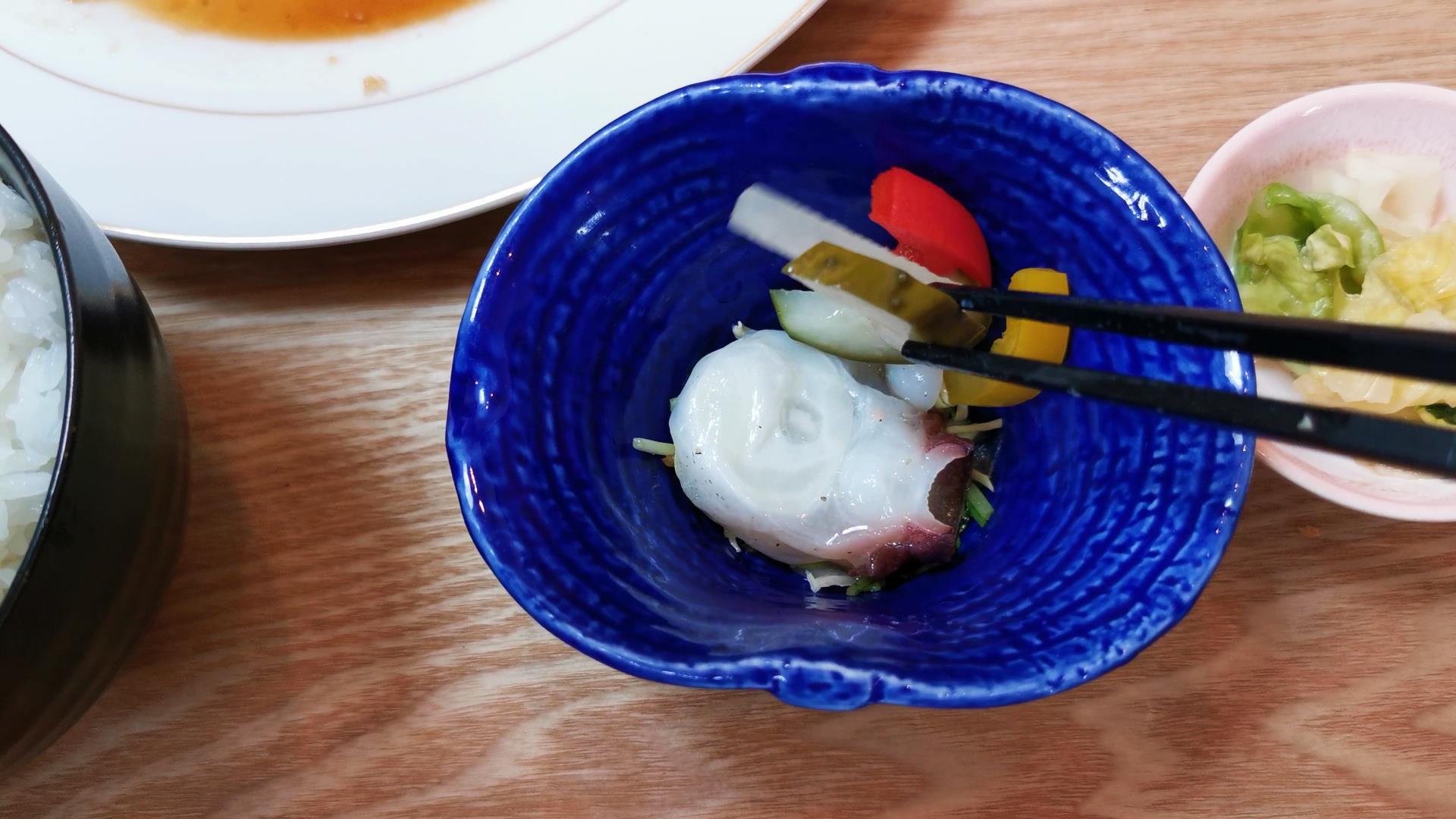 タコのマリネとお新香、味噌汁付きです!
