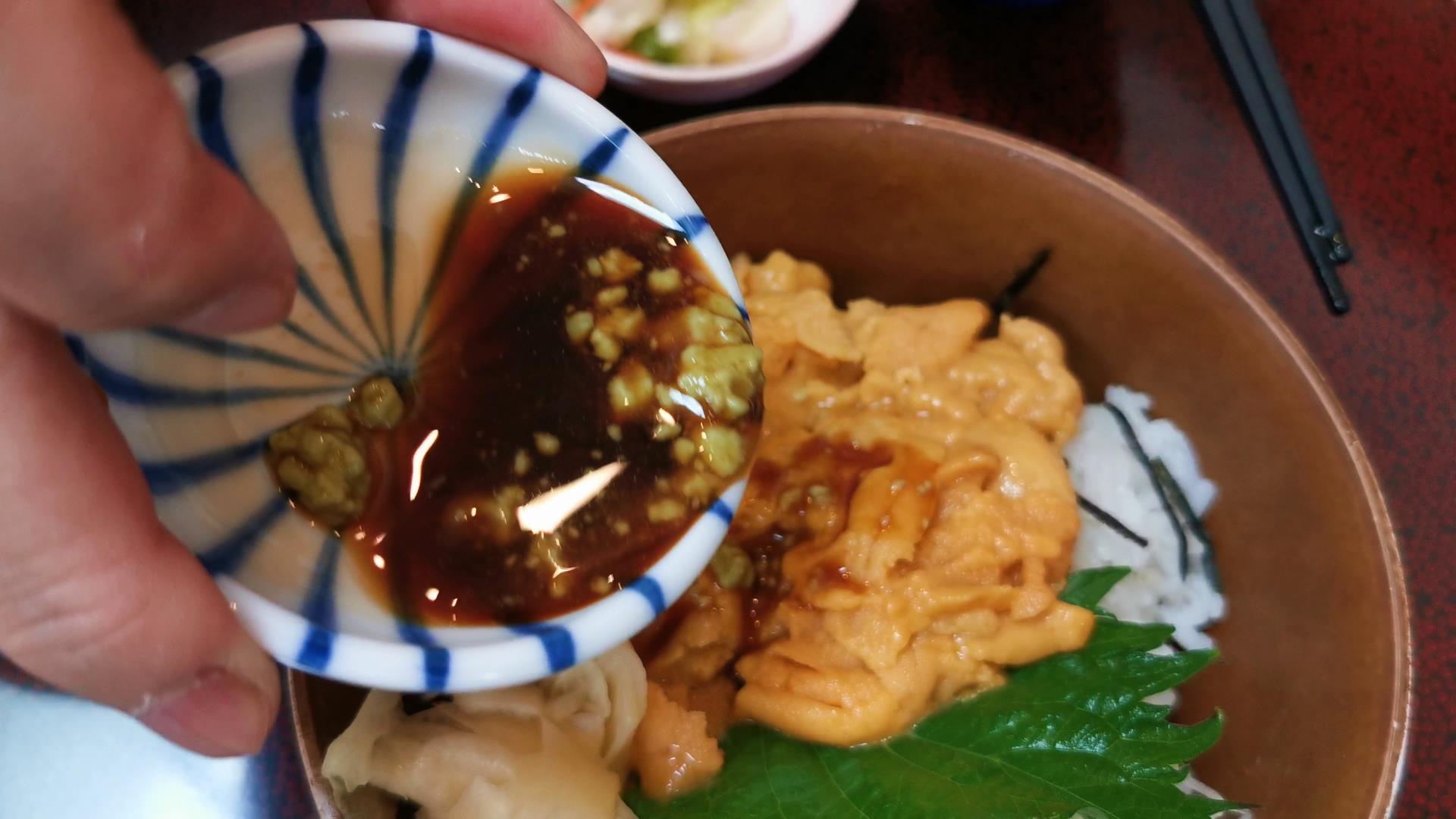 ワサビを醤油で溶いて回しかけ!