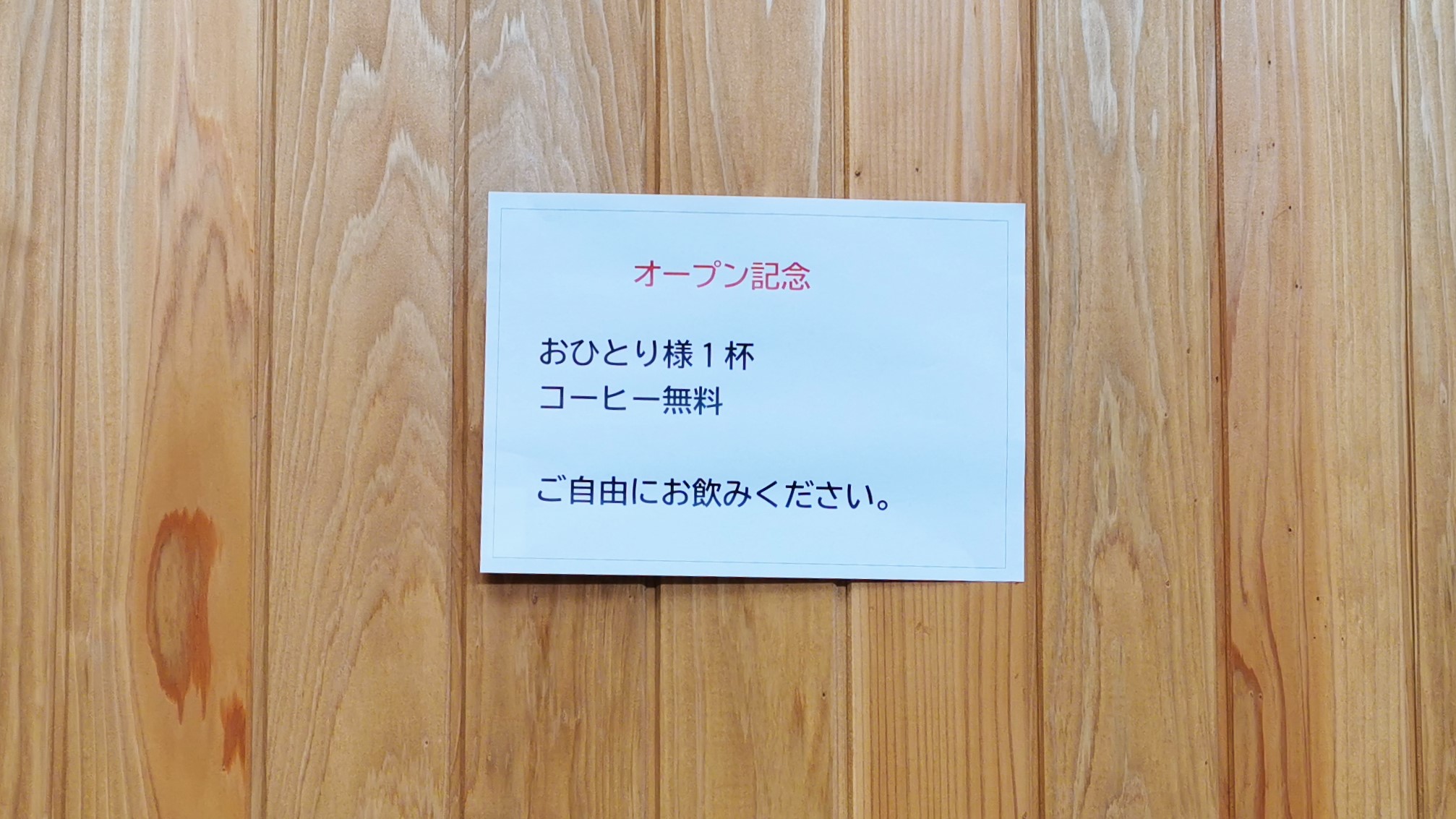 オープン記念でコーヒー1杯サービスしてました!