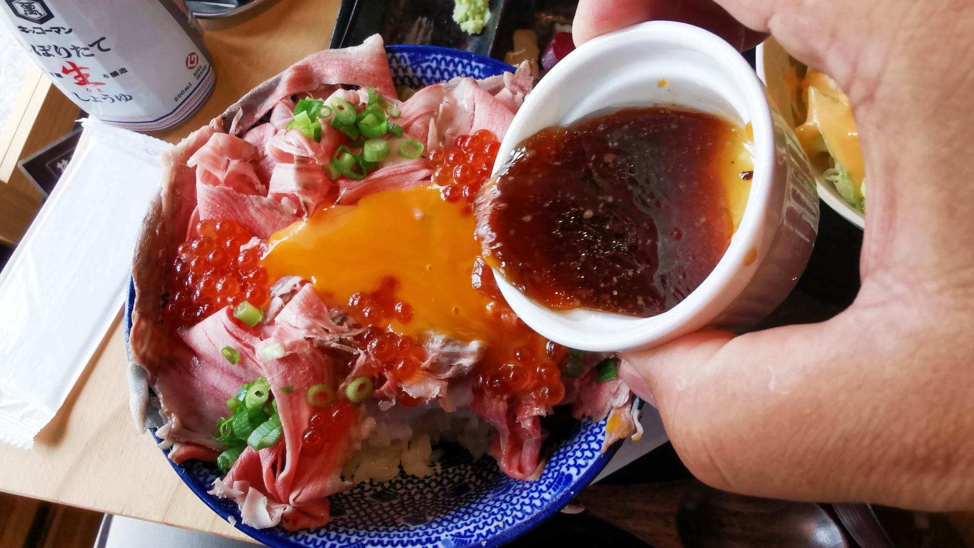 卵の黄身、ローストビーフ、イクラの三位一体の攻撃力が凄まじい!