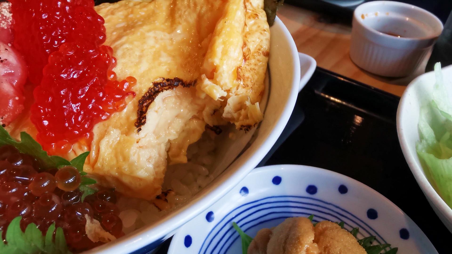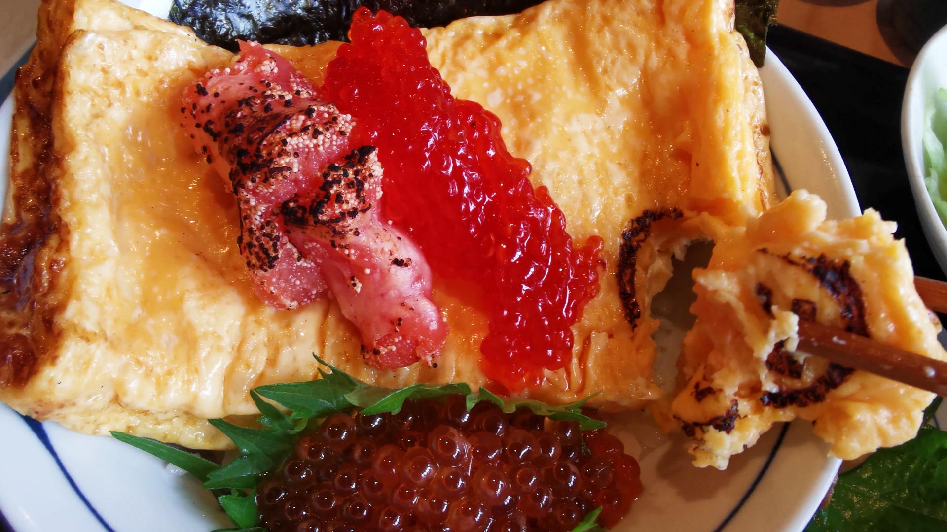 スジコ、タラコ、イクラの魚卵3兄弟と鶏の卵という究極の玉子丼!