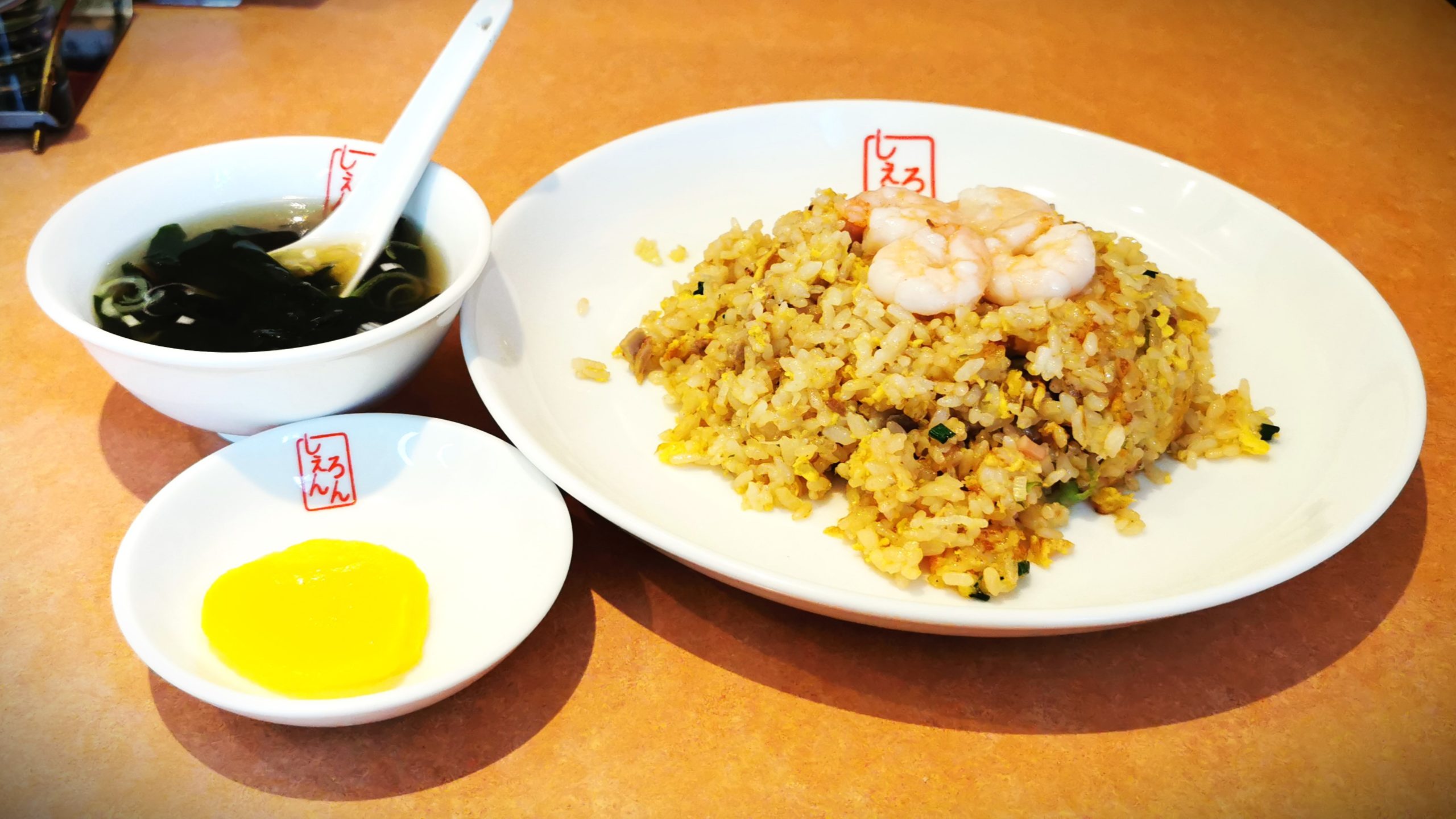 連れは五目あんかけ焼きそば、私はラーメンとエビチャーハンをオーダー!
