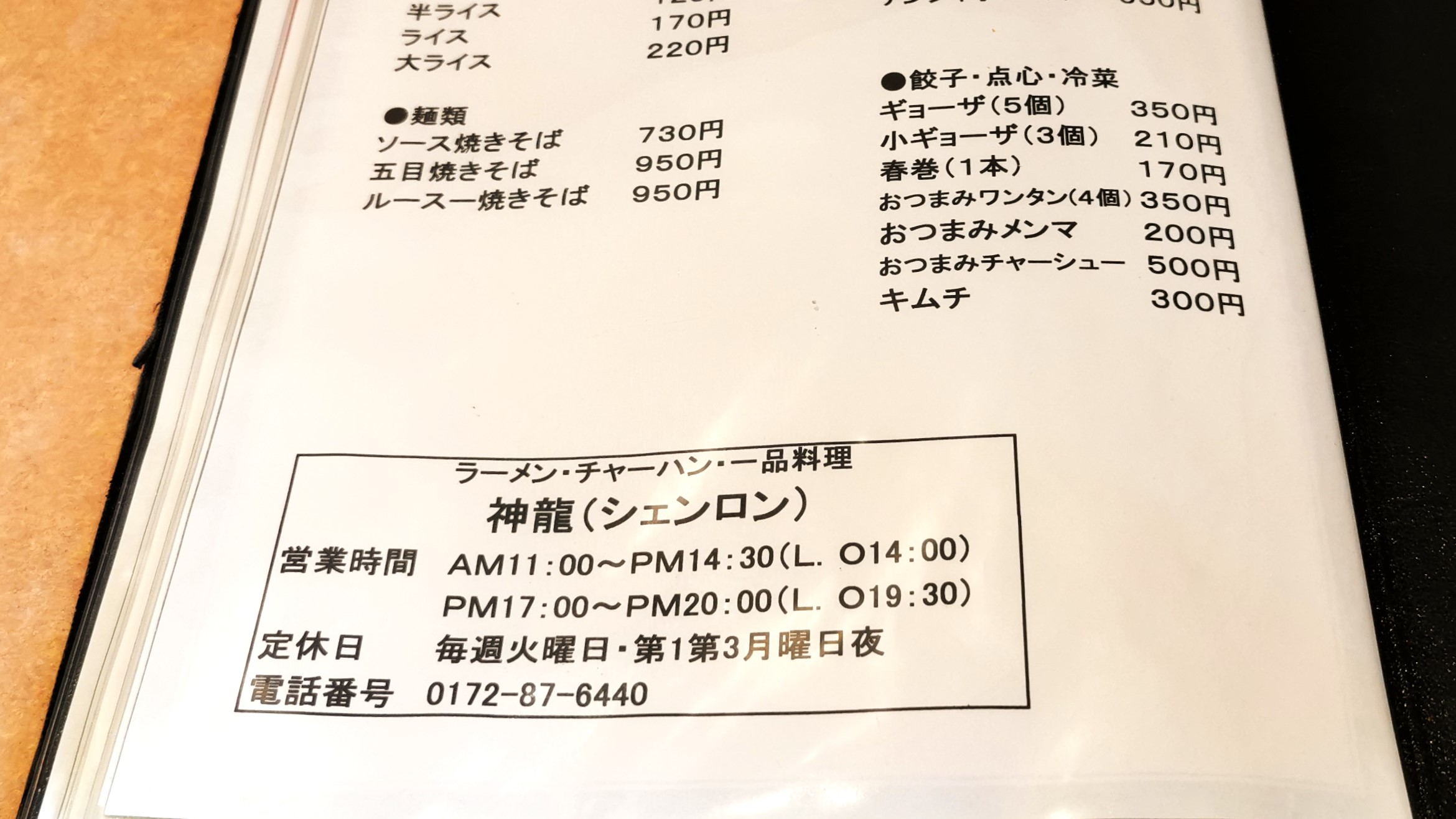 弘前市泉野2丁目、神龍(シェンロン)さんにおじゃましました!